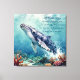 A oceanic themed wall art with a beautiful illustration of an impasto style whale swimming deep in the sea by vibrant colorful coral. A really beautiful coastal art. Colors used are teal, blue and soft coastal colors. A relaxing beachy poem for a calming day.