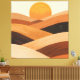 Una cálida y apacible obra de arte con colinas onduladas en tonos tierra bajo una brillante puesta de sol. Las capas suaves y fluyentes crean un paisaje pacífico y minimalista. Ideal para añadir un toque natural y acogedor a cualquier espacio.