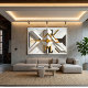 Obra que emana lujo con formas geométricas precisas. Lo blanco se encuentra con el rico dorado, creando un impresionante efecto 3D. Inspirado en el Art Déco, aporta elegancia atemporal a interiores de alta gama, añadiendo profundidad y un toque de realeza al decorado moderno.