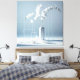Eine ruhige Komposition aus weißen Orchideen vor einem geometrisch strukturierten Hintergrund: Die zarten Blüten entfalten sich in einer schlichten Vase, während feine Linien und rechteckige Formen im Hintergrund eine klare, architektonische Ordnung schaffen. Die helle, fast monochrome Farbwelt aus Weiß und kühlen Nuancen erzeugt eine Atmosphäre von Leichtigkeit und Konzentration. Ideal für moderne Räume, die florale Eleganz mit strukturiertem Design verbinden möchten