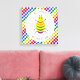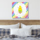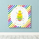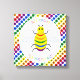 Este impresionante lienzo presenta una imagen de diseño gráfico de color arcoiris de una abeja. La abeja tiene un cuerpo amarillo con ojos negros, piernas y antenas y 5 rayas en su vientre, una en rojo, naranja, verde, azul y púrpura. Hay un texto de color arcoiris alrededor de la abeja que dice "Sé orgulloso de ser el que eres" También hay una selección de flores de color arcoiris en el fondo.