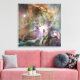 Una impresionante imagen cosmológica de la nebulosa de Orión, una composición de imágenes de los telescopios espaciales Hubble y Spitzer, que resulta en un arco iris espacial de hermosos colores pastel.