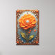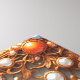 A vibrant orange flower sculpture framed by an ornate gold frame adorned with pearls and decorative leaves. Rich texture, luxurious craft, and warm colors ideal for high-end decor and art collections.