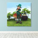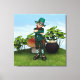 Representación digital en 3D de un leprechaun parado cerca de una olla de oro, un hongo y plantas de shamrock. Regalo perfecto para el día de San Patrón