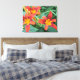 Las orquídeas coloridas destacan en la estampada decorativa de tela envuelta.