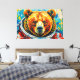 Esta sorprendente obra de arte de Otis Porritt presenta un oso con un casco de astronauta, su mirada directa y cautivadora. El pelaje del animal se representa con una rica tapicería de pinceladas texturadas en cálidos naranjas, amarillos y marrones, creando un efecto vibrante, casi impasto. Azules y púrpuras fríos definen el hocico, contrastando con los tonos ardientes del pelaje. La visera reflectante del casco enmarca la cara del oso, mientras que el fondo gira con pinceladas dinámicas de azul verde y azul profundo, evocando una extensión cósmica. El medio digital captura magistralmente una estética pictórica.