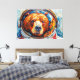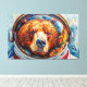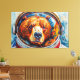 Esta sorprendente obra de arte de Otis Porritt presenta un oso con un casco de astronauta, su mirada directa y cautivadora. El pelaje del animal se representa con una rica tapicería de pinceladas texturadas en cálidos naranjas, amarillos y marrones, creando un efecto vibrante, casi impasto. Azules y púrpuras fríos definen el hocico, contrastando con los tonos ardientes del pelaje. La visera reflectante del casco enmarca la cara del oso, mientras que el fondo gira con pinceladas dinámicas de azul verde y azul profundo, evocando una extensión cósmica. El medio digital captura magistralmente una estética pictórica.
