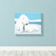 Un oso polar con dos cachorros, una huella de arte de la vida salvaje en un lienzo estirado.