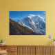 Fotografía paisajística de un bosque otoñal frente a montañas cubiertas de nieve en invierno.
