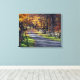 Un rústico poste dividido y unas líneas de cercanías de ferrocarril en un carril rural a principios de otoño.