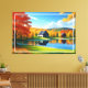 Lienzo Paisaje con Lago, Cabaña Y Árboles-324563
