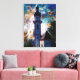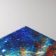 Una nebulosa brillante, azul y dorada llena el cielo detrás de una torre exótica de Oriente Medio -un cielo estrellado de fantasía y una vista del paisaje que evoca a otro mundo- arte digital de medios mixtos