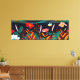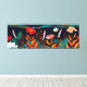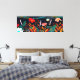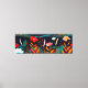la naturaleza tranquila con flores de colores. El fondo oscuro ayuda a que se destaquen las flores brillantes, creando un ambiente tranquilo y apacible. Las flores están pintadas en colores cálidos como el naranja y el amarillo, y colores fríos como el azul.