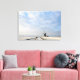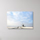 Paisaje de lienzo con una vista minimalista en un paisaje invernal en Holanda con un camino y un canal hacia un molino de viento bajo una capa de nieve con bonitas nubes al amanecer en el campo holandés. Gran decoración de invierno en la pared.