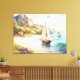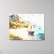 Un paisaje brillante con barcos de vela en el mar. Gráfica computacional, efecto de pintura.