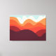 Un diseño de paisaje minimalista audaz en tonos rojos, naranjas, marrones, crema y azul claro