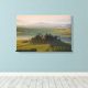 Paisaje de lienzo fotografía de la famosa casa Podere il Belvedere rodeada de colinas y cipreses al amanecer en una mañana nublada en un paisaje en el valle de Orcia en Toscana, Italia.