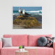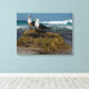 Esta hermosa imagen de lienzo muestra una imagen de primer plano de dos gaviotas del Pacífico sobre una roca en la playa en la isla de Kangaroo, en el sur de Australia. ¡Esta obra de arte en la pared alegrará a cualquier habitación de tu casa! ¡Estarás mucho más feliz viendo esta vista única todos los días! La gaviota más grande de Australia, la gaviota del Pacífico, ocurre sólo a lo largo de las costas del sur de Australia. A pesar de su nombre, la especie rara vez se ve en la costa del Pacífico, y es mucho más común en las playas que bordean los océanos sur e indio. Se reproducen en colonias en islas, que se extienden desde el Grupo Furneaux en el Estrecho de Bass, al oeste, hasta la Bahía de los Tiburones. Sus nidos pueden consistir en una raspadura en el suelo, a veces alineada con grava, o en un nido limpio hecho de hierba, palos y algas. La gaviota del Pacífico es una gaviota muy grande con respaldo negro, con una enorme factura amarilla, ampliamente cubierta con escarlata tanto en la parte superior como en la parte inferior de la mandíbula. Las alas superiores y los puntas de las alas son totalmente negros con un estrecho borde interior de la cola blanco, la cola es blanca con una banda negra amplia cerca del extremo. Las piernas son de color amarillo a amarillo naranja. Las gaviotas juveniles del Pacífico están moteadas marrón oscuro con cara pálida y el billete es rosa con punta negra. Los inmaduros tienen alas marrones oscuras, un cuerpo blanquecino y una cuenta amarilla de punta negra.