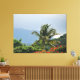 La luz del sol en el follaje de primer plano contrasta maravillosamente con el cielo húmedo y la montaña nublada detrás.