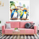 símbolos de la identidad colombiana, obras coloridas y vibrantes una fusión entre la naturaleza exuberante con paisajes andinos y animales exóticos y elementos urbanos como edificios, personas, el camino en la pérdida de la biodiversidad, al tiempo que celebra la riqueza cultural y natural de su país.