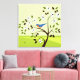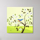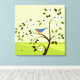 Pájaro azul sentado en un estilizado árbol florido en el arte del paisaje de primavera