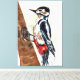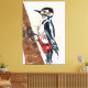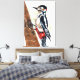 pintura acuática tradicional con un pájaro carpintero colorido de colores rojo y azul sentado en un árbol buscando comida como una impresión decorativa de tela.