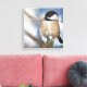 Cute Invierno Negro Capped Chickadee Lienzo Envuelto. Las obras de arte de este lienzo son de un adorable cuadro de varas de invierno. ¡Perfecto para la naturaleza y el amante de las aves! Esta obra de arte también está disponible en otros productos para mezclar y emparejar. Jenn's Arts & Crafts Emporium Connection.