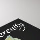 Asombroso rosebudo blanco con persistentes gotas de lluvia contra un fondo negro con la inspiradora palabra Serenidad. Fotografía de flores por Susan.