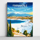 Pamukkale, Turkey in classic travel poster style. Bright sky blues, warm earth tones, crisp typography. This canvas print brings a sense of place to a living room, hallway, office, reading nook. A strong gift for travelers, wanderlusters, housewarmings. Pair with other destinations from the Travel Poster Canvas collection for a cohesive wall set.