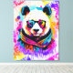 Impresión de tela estirada de oso panda - Pintura de oso panda colorida - Impresión de lienzo de oso panda - Cute Panda Pintura