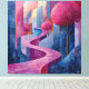 Transforme sus paredes con este fascinante paisaje abstracto monocromático rosa y azul. Esta obra de arte, que combina elementos naturales y urbanos en una paleta armoniosa, cuenta con una sinuosa avenida rodeada de audaces estructuras geométricas y vibrantes árboles rosas. La composición dinámica y la interacción suave de la luz y la sombra crean profundidad y tranquilidad, lo que la convierte en el centro perfecto para interiores modernos, minimalistas o contemporáneos. Una elección impresionante para los amantes del arte que buscan un diseño único y vibrante.