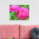 Colorido paro de flores de zinnia rosa brillante envuelto en la impresión de lona. Fotografía de Susan. Para más posters y huellas de flores, animales y naturaleza, por favor visite mi galería de posters Smilin' Eyes Posters. Esta imagen está disponible en muchas tarjetas y productos de mi tienda principal Smilin' Eyes Treasures.