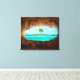 Esta foto muestra una antigua cueva india ubicada en una remota isla caribeña con vistas al hermoso mar caribeño que reluce y la cálida luz del sol, bañando algunas remotas palmeras de coco en una isla desierta.