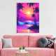 Lienzo Paraíso tropical: Atardecer rosa con palmeras