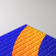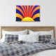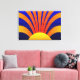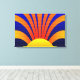 La pared de ladrillo de Sun Graffiti es una obra de arte digital con un fondo de degradado azul oscuro y un sol de gradiente naranja de color rojo amarillo en la parte inferior, vigas de sol en la parte superior y exterior.