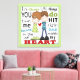Una linda pareja caprichosa, una joven y un joven, se paran de la mano con un corazón entre ellos. El texto que los rodea dice, "Son esas pequeñas cosas que haces las que me golpean justo en medio del corazón" en una colorida mezcla de múltiples fuentes. Diseño original de Christie Black de Creations from the Heart.