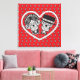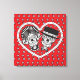La pareja de cráneos del azúcar del Día de los Muertos se coloca en un corazón rojo con flores blancas.