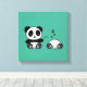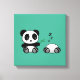 Un par de lindos pandas personalizados. El panda izquierdo sostiene un palo de bambú mirando al panda derecho que se ha quedado dormido.