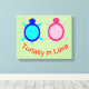 Esta impresionante impresión de lona muestra una linda imagen de una tortuga azul y una tortuga rosa lado a lado. La linda pareja tiene ojos sólo para los demás y pequeñas colas lindas. El caparazón de la tortuga está hecho de dos tonos de rosa para la hembra y azul para el macho. Estos tipos están realmente enamorados y harían un gran regalo para las parejas.