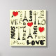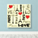 Diseño de texto de París para El día de San Valentín con formas de corazón rojo, Torre Eiffel y lámparas de calle con fondo amarillo