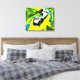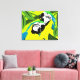 Arte de loro contemporáneo sobre lienzo dorado y azul macao con fondo de color lima