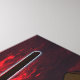 Representación alegórica de la Pascua. Con un cielo rojo que presagia la tragedia que ocurriría pronto a los egipcios, el brazo de Moshe sostiene a su equipo de detrás de las pirámides en la promesa del éxodo que ocurrirá esa noche. Personalizar agregando su propio texto. Las rayas azules y blancas de la manga de Moshe evocan el atuendo carcelario de los detenidos en los campos de concentración del Holocausto.