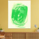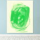 Expressive medium green brushstrokes paint the yellowish surface of this canvas, generating pasted surfaces and veiled ones. An organic line connects them.