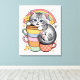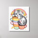 Abraza el encanto de "Pastel Paws & Rainbow Sips", un diseño encantador que presenta un adorable gatito gris acurrucado entre una pila de tazas de colores, todo sobre un suave arcoíris pastel. Esta ilustración caprichosa captura la esencia de la cultura kawaii, combinando tonos pastel suaves con elementos juguetones como estrellas sonrientes y abejas zumbando.