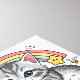 Abraza el encanto de "Pastel Paws y sorbos de arcoíris", un diseño encantador que presenta un adorable gatito gris entre una pila de tazas de colores, todo sobre un suave arcoíris pastel. Esta ilustración caprichosa captura la esencia de la cultura kawaii, combinando tonos pastel suaves con elementos juguetones como estrellas sonrientes y abejas zumbando.