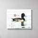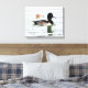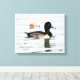 Un solo macho de cuello anejo, Aythya collaris, se queda en el lago Higgins, Michigan durante la migración de otoño.