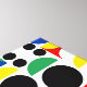 Impresionante repetición geométrica Escandinavia estilo bauhaus nórdico a mediados de siglo Círculos rojos, negros, amarillos, azules y verdes y formas de semicírculo Decorativo Diseño de patrones modernos sobre fondo blanco