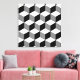 Ilusión óptica de formas que crean el patrón de cubos en negro, blanco y gris.