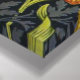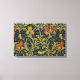 Este diseño presenta una impresión de un diseño de tela creado por el artista británico William Morris (1834-1896), asociado con el Movimiento de Artes y Artesanías. Muestra flores de iris azules y naranjas en un patrón elegantemente simétrico. La flor lleva el nombre de Iris, que era la diosa griega del arco iris y mensajera de los dioses olímpicos, que llevaba mensajes a la humanidad. Las hojas y los tallos de las plantas de iris se representan en azul y verde. Algunos pájaros amarillos adornan el follaje de algunas plantas. El patrón original fue diseñado por William Morris en 1887.