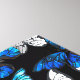 Mariposas realistas, azules y blancas, sin fisuras en el fondo negro.